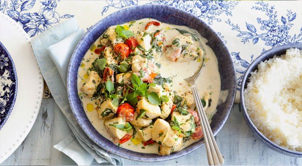 Описание: ✅ Сливочное куриное рагу с томатами и зеленьюСливочное куриное рагу с томатами и зеленью – сытное и при этом легкое горячее блюдо для семейного обеда или ужина. Оно не оставляет чувства тяжести, так как в составе диетическое куриное филе, овощи, зелень и немного сливок. Рецепт подкупает своей простотой, доступными ингредиентами и тем, что получается очень вкусно.Для приготовления 4 порций нужно:✔ 4 филе куриной грудки✔ 200 г помидоров черри✔ 4 вяленых помидора✔ 200 мл сливок жирностью 20%✔ 4 зубчика чеснока✔ 2–3 веточки базилика✔ 2–3 веточки кинзы✔ 2–3 веточки петрушки✔ 2 ст. л. оливкового масла✔ соль, свежемолотый черный перец - по вкусуКак приготовить:Нарежьте курицу кубиками со стороной 2–2,5 см. Вяленые помидоры нарежьте небольшими кусочками, помидоры черри разрежьте пополам. Измельчите зелень и чеснок.В глубокой сковороде разогрейте оливковое масло. На среднем огне обжарьте курицу до золотистого цвета, 10 мин. Посолите и приправьте измельченным чесноком и черным перцем. Уменьшите нагрев, добавьте в сковороду шпинат, вяленые помидоры и помидоры черри. Продолжайте готовить еще 5 мин. Влейте сливки, посыпьте половиной зелени, перемешайте и готовьте еще 3–4 мин.Разложите рагу в тарелки, сбрызните оливковым маслом и украсьте оставшейся зеленью. Подавайте с рисом.