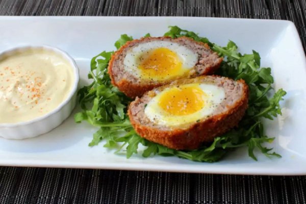 Описание: ✅ Яйца по-шотландскиЯйца по-шотландски — блюдо британской кухни. Представляет собой варёные яйца, обмазанные мясным фаршем, обжаренные в панировочных сухарях. Можно подавать с соусом.Порций: 6✔ яйца, сваренные вкрутую – 6 шт.✔ 1 ч. л. тертой лимонной цедры✔ 20 г панировочных сухарей✔ растительное масло – 2 ст.л.✔ мука пшеничная – 2 ст.л.✔ петрушка рубленая✔ 350 г свиного фарша✔ яйца сырые – 2 шт.✔ по 0,25 ч. л. сухого тимьяна, чабера, молотого кориандра, тертого мускатного ореха✔ сольГотовка: 1 ч➤ Свиной фарш выложить в миску, вбить 1 яйцо. ➤ Добавить зелень петрушки, цедру, тимьян, чабер, кориандр, мускатный орех. Посолить, поперчить и хорошо перемешать. ➤ Духовку разогреть до 200ºС, противень размером 33х23 см слегка смазать маслом. ➤ В отдельные тарелки всыпать муку и панировочные сухари. Оставшееся сырое яйцо взбить. ➤ Свиной фарш с пряностями разделить на 6 равных частей и сформировать из них пирожки. В каждый пирожок, смочив руки холодной водой, завернуть одно очищенное вареное яйцо. Пирожки с яйцом обвалять сначала в муке, затем в яйце, потом в панировочных сухарях. ➤ Выложить на подготовленный противень и запекать по 10–15 мин. с каждой стороны. Дать постоять в выключенной духовке 5–7 мин. и подавать.