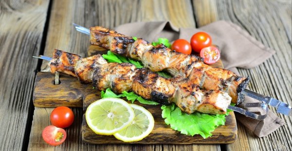 Шашлык из красной рыбы в лимонно-горчичном маринаде