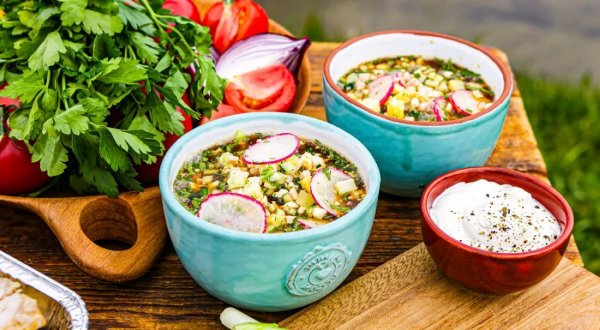 Описание: ✅ Окрошка на квасеЕсли на даче предстоят «жаркие» деньки, приготовьте домашнюю окрошку на квасе, которая станет настоящим спасением для тела и души. Именно она поддержит вас в битве за будущий урожай или в борьбе за ровный газон, а также просто подарит отличное настроение. Этот рецепт — вполне классический, только вместо отварного мяса мы предлагаем использовать ветчину. Ну, просто потому, что это значительно ускорит и упростит процесс создания супа! Если же вы готовы потратить время на варку мяса — пожалуйста, используйте его. В любом случае домашняя окрошка на квасе выполнит сразу три важные задачи: насытит, освежит и подарит истинное наслаждение вкусом.