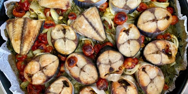 Название: Скумбрия, запечённая с черри и луком