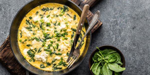 Описание: ✅ Жареный творог - с яйцами и шпинатомОчень сытное белковое блюдо готовится быстро и просто.Для 1 порции нужно... ✦ Растительное масло - 1 ч. ложка✦ Зернистый творог - 3 ст. ложки✦ Шпинат - 1 горсть✦ Яйца - 2 штуки✦ Соль - по вкусу✦ Сыр - 1 небольшой кусочек (натереть на крупной тёрке)Готовка: 10 мин.1․ Смажьте разогретую сковороду маслом. Всыпьте творог и жарьте, помешивая, пока из него не выделится сыворотка.2․ Всыпьте шпинат. Дождитесь, когда он немного уменьшится.❗ Кстати... Можно добавить и другую зелень.3․ Взбейте яйца с солью, влейте в сковороду. Посыпьте тёртым сыром.4․ Накройте крышкой и доведите яйца до готовности.© Из Сети