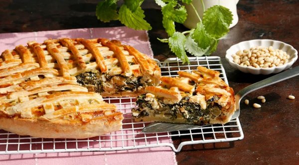 Нежный пирог с зеленью и кедровыми орехами