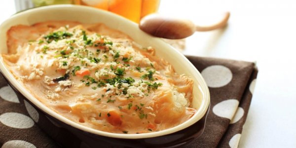 Описание: ✅ Дория - японская рисовая запеканка с креветкамиПо легенде, это блюдо придумал французский шеф, работавший в японском городе Иокогаме, поэтому в составе есть соус, очень напоминающий бешамель.