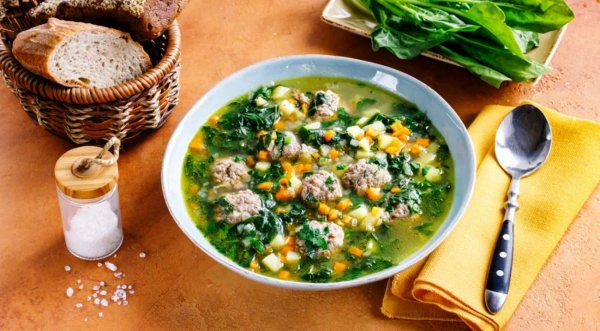 Описание: ✅ Густой суп с фрикадельками из телятиныГустой суп с фрикадельками из телятины готовится просто, выглядит аппетитно, на вкус — замечательный! Фрикадельки из готового фарша делать легко и приятно. Из телячьего фарша они получаются легкими и нежными — такие очень любят дети. В саму похлебку вы можете добавить любую огородную зелень по вкусу — например, шпинат или даже ботву от морковки (да-да, в супах она очень даже ничего!). Ну а если у вас нет готового бульона — не расстраивайтесь, варите суп с фрикадельками из телятины на воде, получится ничуть не хужеДля 4 порций нужно... ➦ 1,5 л любого бульона (мясной, куриный, овощной) или воды➦ 400 г телячьего или говяжьего фарша➦ 4 средние картофелины (500 г)➦ 1 средняя морковка (100 г)➦ 300 г свежего шпината или любой ботвы➦ 3 средние луковицы (300 г)➦ 4 зубчика чеснока (20 г)➦ 1 среднее яйцо С1➦ 60–80 г сливочного масла➦ 40 г топленого масла➦ соль - по вкусу➦ свежемолотый черный перец - по вкусу➦ рубленая зелень - для подачиГотовка: 50 мин➤ Для фрикаделек раздавите, очистите и измельчите чеснок. Половину 1 картофелины натрите на мелкой терке. Cмешайте фарш с картофелем, чесноком, яйцом, крахмалом, солью и перцем, вымесите до однородности. Положите в холодильник на 10 мин.➤ Для похлебки очистите морковь, лук и картофель, мелко нарежьте. Порубите шпинат, удаляя жесткие стебли.➤ Нарежьте холодное сливочное масло кубиками 7–8 мм. Мокрыми руками катайте из фарша небольшие фрикадельки, в центр каждой засовывая кусочек масла. Положите фрикадельку в морозильник на 10 мин.➤ Нагрейте в кастрюле с толстым дном топленое масло, обжарьте лук и морковь, 5 мин. Добавьте картофель, обжаривайте еще 5 мин. Добавьте половину бульона или воды, доведите до кипения, посолите, поперчите и томите на слабом огне 10 мин. Добавьте шпинат, томите еще 5 мин.➤ В другой кастрюле доведите до кипения оставшийся бульон, немного посолите и сварите в этом бульоне фрикадельки. Соедините содержимое обеих кастрюль. Перед подачей посыпьте зеленью.❗ На заметку... Сколько варятся фрикадельки из телятины? Если они небольшого размера, как в нашем пошаговом рецепте густого супа, то вариться будут примерно 10 минут.❗ Кстати... Фрикадельки из телятины хороши не только в супе: вы можете залить их томатным соусом и подать с гарниром, например, с картофельным пюре, рисом или макаронами.© Из Сети