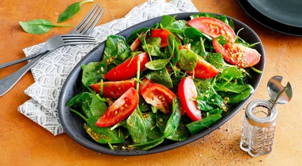 Название: Салат из помидоров и шпината - с заправкой карри
