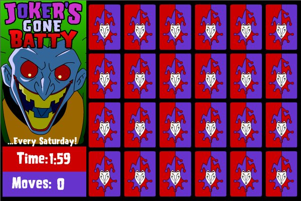 Описание: Джокер вернулся к своим злым делам в игре Joker's Gone Batty, и он проклял некоторых любимых героев. Он заставил их постоянно улыбаться, так что вы их единственный шанс вернуться к нормальности. Сможете ли вы пойти против клоуна-преступника и остановить его проклятие?Персонажи вроде Оми и Кимико, герои шоу Xiaolin Showdown, Джонни Тест и Дьюки и другие были тронуты проклятием. Ваша задача — переворачивать карты и сопоставлять пары. Хватит ли вашей памяти, чтобы спасти их всех?
