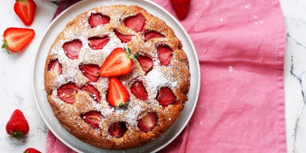 Описание: ✅ Клубничный пирог на йогуртеМягкий и влажный пирог готовится очень просто.Для 8 порций нужно: ➦ Клубника - 340 г➦ Крупные яйца - 2 штуки➦ Греческий или натуральный йогурт - 180 г➦ Растительное масло - 120 мл➦ Ванильный экстракт - 1 ч. ложка➦ Сахар - 200 г➦ Мука - 190 г➦ Разрыхлитель - 1 ч. ложка➦ Сода - ½ ч. ложки без горки➦ Соль - ¼ ч. ложки___Можно добавить:➦ Тёртая лимонная цедра - 1 ч. ложкаГотовка: 1 ч. 20 мин.➤ Смажьте маслом форму и застелите дно пергаментом. Разогрейте духовку до 180 °C.❗ Отлично подойдёт форма диаметром 20 см.➤ Половину клубники нарежьте небольшими кусочками, а остальные ягоды разрежьте вдоль пополам.➤ Взбейте венчиком яйца комнатной температуры, йогурт, масло и ваниль.➤ Добавьте сахар и цедру, снова взбейте.➤ Соедините муку, разрыхлитель, соду и соль. Вмешайте в йогуртовую массу.➤ Вылейте половину теста в форму, добавьте кусочки клубники, залейте оставшимся тестом. Сверху распределите половинки ягод срезом вниз.➤ Выпекайте клубничный пирог 50–60 минут.❗ Готовность проверяйте зубочисткой: она должна выйти без жидких остатков теста.