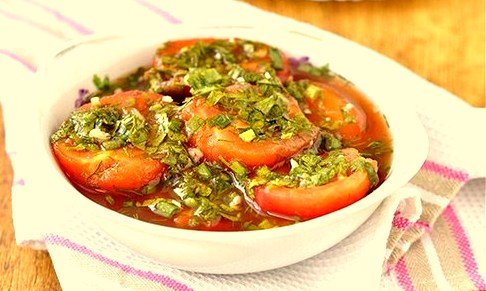 Описание: Не дожидаясь, пока выйдут у нас консервированные помидоры свежего урожая, можно приготовить очень быстрые, всего за два дня, малосольные помидоры с кетчупом. Это такая вкуснятина. Попробуйте. Может кто-то и знаком с таким рецептом, но для тех кто не знаком , этот рецепт может оказаться в Ваших любимых рецептах. Знакомьтесь!Ингредиенты:Помидоры сливовидные - 3 кг.,Зеленый лук - 50 гр.,Укроп - 50 гр.,Петрушка - 50 гр.,Чеснок - 1 головка,Перец черный молотый - по вкусу.Рассол:Вода бутилированная (или холодная кипяченная) - 4 стакана (1 литр)Кетчуп хорошего качества (у меня "Heinz")- 700 гр.,Соль - 2 ст.л.,Сахар - 2 ст.л.ПриготовлениеПомидоры промыть под проточной водой. Вырезать острым ножом плодоножку.Зелень помыть, обсушить, мелко нарезать. Чеснок мелко нарубить. Зелень с чесноком перемешать, поперчить черным свежемолотым перцем.бланшировать помидоры в кипящей воде ровно 2 минуты, не больше. Бланшируем частями.Вынимаем помидоры из горячей воды шумовкой, и сразу перекладываем в холодную воду.После всей этой процедуры, легко снимем кожицу у помидор.Очищенные помидоры режем на две части.Укладываем слоями в кастрюлю помидоры с зеленью (слой помидоров - зелень, помидоры - зелень). У меня 4-х литровая кастрюля заполнилась полностью.Для рассола смешать воду, кетчуп, соль и перец.Залить помидоры рассолом, закрыть крышкой и убрать в холодильник на 48 часов.Через 2 дня можно кушать! Эти помидоры спокойно простоят в холодильнике 2-3 недели, но у нас они столько не стоят, исчезают быстро.