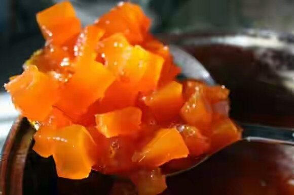 Описание: ИнгредиентыТыква- 1 килограммСахар- 800 граммовАпельсин- 1 штукаПриготовлениеВсегда заготавливаю на зиму такое варенье из тыквы Необыкновенное. Оно действительно получается необыкновенно вкусным и ароматным. Такое варенье можно добавлять в чай, рогалики, выпечку и мороженое. Да и просто можно кушать с хлебом.1. Сперва очищаем от кожуры небольшую тыкву. Потом убираем семечки. Оставшуюся мякоть нарезаем небольшими кубиками.2. Апельсин очищаем от кожицы. Его мякоть также нарезаем в виде кубиков.3. Выкладываем тыкву и апельсин в большую миску. Сверху засыпаем все сахарным песком. В таком виде оставляем до утра.4. Утречком кладем миску на медленный огонь. Доводим смесь до кипения и варим около получаса. При этом не забываем периодически помешивать.5. После этого перекладываем приготовленное варенье из тыквы в подготовленные банки. Стерилизуем и убираем в прохладное место.Вкусных Вам закруток!
