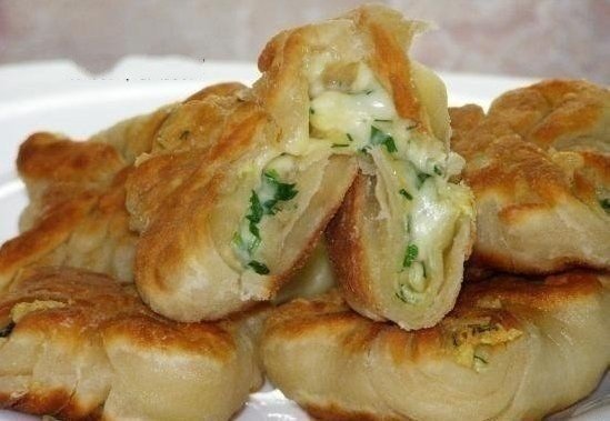 Описание: Ингредиенты:Тесто:-1 стак. кефира.-2 стакана муки (соль, сахар по вкусу, совсем немного)Приготовление:Замесить упругое тесто) Поставить на 40 мин. в тепло.Затем тесто разделить на две части. Раскатать, смазать сливочным маслом, свернуть в рулет и убрать на 30 мин. в холодильник. Затем отрезать кусочки, делать из них квадратики, на середину начинку, завернуть конвертиком и на сковородку.Начинка:-Тертый сыр,-зелень,-сырое яйцо.