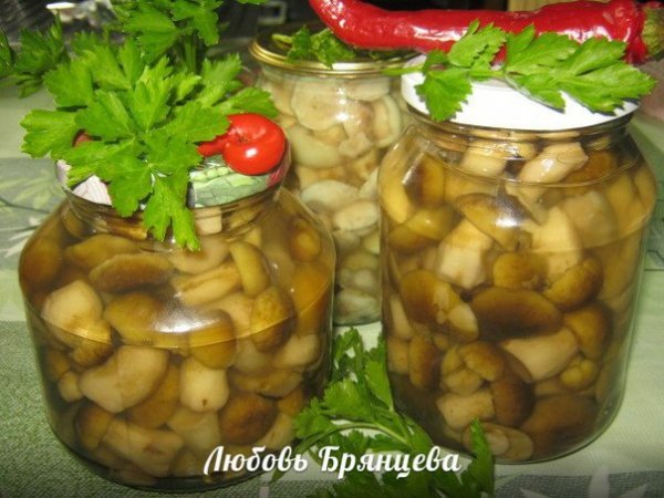 Описание: МАРИНОВАННЫЕ ГРИБЫВ эмалированную кастрюлю налить0,5 л воды, добавить 1–1,5 ст.ложки соли, 60-70 мл 9% уксуса,довести до кипения и опуститьтуда 1 кг почищенных и вымытыхсырых грибов. Если маринад непокроет все грибы, не нужноволноваться, при нагревании онивыделят сок и окажутся полностьюпогруженными в маринад. Кактолько жидкость закипит, нужноубавить огонь и варить, осторожнопомешивая и снимая пенку 10-15минут.После этого добавить пряности:1-2лавровых листа, 5 горошиндушистого перца, 1-2 гвоздики,добавить 1 ч. ложку сахара,2-3зубчика чеснока (можно немногозелени в конце варки) и варитьгрибы в маринаде 20-25 минутпока они опустятся на дно, амаринад станет прозрачным.Количество пряностей и приправувеличить соответственноколичеству грибов.После варки грибы раскладывают вгорячие, стерилизованные, плотнозакрывающиеся банки и заливаютмаринадом, в котором ониварились (без последующейстерилизации). Я использую дляэтого новые крышки и банки, накоторые их можно закрутить, илипросто закатать стерилизованнымижестяными крышками. В этом годумариновались маслята изеленушки.