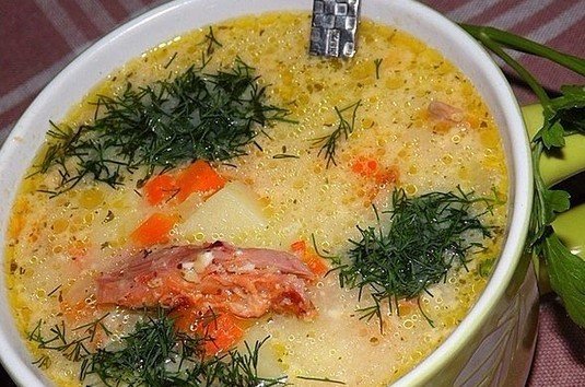 . Ароматный супчик с копчёной курицей и плавленным сырком