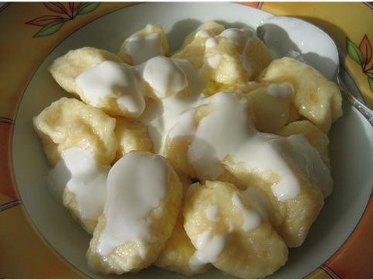 Описание: Ингредиенты:Творог жирный 500 гЯйца свежие 2 шт.Сахар белый 2 ст. л.Соль 1 ч. л.Масло сливочное 3 ст. л.Мука белая 1 стаканСметана по вкусуПриготовление:1. Творог перетереть через сито или измельчить в блендере, если есть крупинки. У меня таких не было, поэтому я размяла творог вилкой.2. Добавить к творогу сахар, соль, яйца и все хорошо перемешать вилкой до однородной массы.3. Масло растопить на водяной бане и добавить к творогу. Хорошо перемешать до однородной, эластичной консистенции.4. Муку просеять и добавить к творогу, хорошенько перемешать. Тесто должно получится мягким и будет липнуть к рукам.5. Стол обильно посыпать мукой, выложить творожное тесто.6. Руками немного вымесить тесто и скатать в мягкий шар, который не будет липнуть к рукам.p.s. В процессе тесто будет липнуть к рукам. В панику впадать не стоит. Периодически посыпайте руки и стол мукой и продолжайте работать.7. Тесто разделите на 3-4 части.8. Постоянно посыпая мукой стол, каждый кусок теста скатайте в тонкую колбаску.9. Каждую колбаску разрежьте на кусочки в виде квадратиков, прямоугольников или треугольников. 10. Закладывать вареники в кипящую подсоленную воду. После того, как ленивцы всплывут, варить 2-3 мин.Подавайте теплыми с маслом и сахаром, сметаной или йогуртом, а может с любимым сиропом.