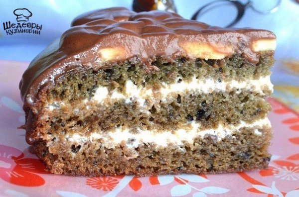 Описание: ТОРТ "СЧАСТЬЕ" ИНГРЕДИЕНТЫ:Для теста:● Яйцо — 2 шт.● Сода — 1 ч. л.● Мука — 200 г● Разрыхлитель — 0,5 ч. л.● Варенье — 200 мл● Сахар — 170 г● Кефир — 200 млДля крема:● Сметана — 300 г● Сахар — 3 ст. л.Для пропитки:● Вода — 50-100 мл● Сахар — 1 ст. л.● Варенье — 1 ст. л.Для помадки:● Какао порошок — 1 ст. л.● Сметана — 2 ст. л.● Сахар — 3 ст. л.● Молоко — 30 мл● Масло сливочное — 50 г● Банан — 1 шт.ПРИГОТОВЛЕНИЕ:1. Варенье перемешать с кефиром и содой, оставить на 15 минут. Затем добавить сахар и яйца, взбить.2. Муку перемешать с разрыхлителем, просеять в тесто, перемешать.3. Вылить тесто в форму 20 см (дно застелить пергаментом). Выпекать примерно 50 мин (смотрите по своей духовке) при 170*.4. Бисквит остудить.5. Для пропитки перемешать кипяченую воду с сахаром и вареньем.6. Бисквит разрезать на 2-3 коржа, пропитать.7. Смазать кремом (кроме верхнего коржа).8. Для помадки все соединить, кроме масла, и варить на медленном огне до однородности. Немного остудить, добавить масло и размешать.9. Банан порезать кружочками, уложить сверху, залить помадкой.