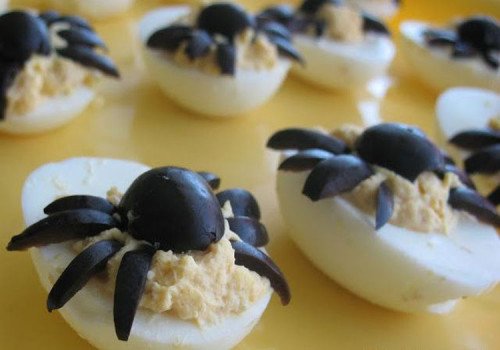 Описание: ФАРШИРОВАННЫЕ ЯЙЦАЧЕРНАЯ ВДОВАИнгредиенты: 3 яйца, 1луковица, 20 г сливочногомасла, 6 маслин, 1 ст. л.Майонеза, черный перец и сольпо вкусу.Приготовление. Мелконарезанный лук хорошообжарьте до золотистогоцвета. Варенные яйцаразрежьте пополам. Уберитежелток, перемешайте его смайонезом, перцем и солью.Эту массу перемешайте с лукоми выложите в белки. Маслиныразрежьте пополам. Однуполовинку выложите на яйцоразрезом вниз. Вторуюразделите ножом на полоски иразложите вокруг целойполовинки маслины. Паукиготовы!