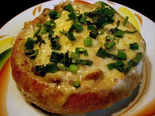 Описание: Закуска "Жюльен в булочке".Курица (окорочок) -1 шт.,грибы свежие (вешенки) - 400 г,сметана - 200 г,сыр твердый -150 г,лук репчатый - 2 шт.,булочки - 6 шт.,растительное масло (для обжарки и смазывания противня), соль.Приготовление:С окорочка снять кожу и отварить в подсоленной воде.Мясо отделить от костей и мелко порезать.Лук нашинковать, спассеровать.Добавить грибы, мелко порезанные, обжарить до выпаривания сока.Добавляем курочку, сметану и тушим 15 мин.Подготовить булочки, отрезать верхушку и убрать мякиш.Сыр натереть на крупной терке.Жюльен положить в булочки, посыпать сыром и отправить в духовку запекаться до румяной корочки.Достать из духовки и наслаждаться вкусом и ароматом.