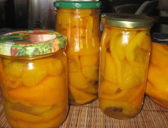 Описание: Маринованный перецИ опять таки не долго и не очень хлопотно.Приблизительно на 3-4 кг перца :-1 стакан сахара-1 стакан уксуса-1 стакан растительного масла-1 стакан воды-1 ст.лож.соли, перец горошек,лавровый лист.Перец нарезать соломкой.Варить в маринаде 10 минут.Уложить в стерелизованные банки(удобнее вилкой и утрамбовывать),долить до краев маринад и закрутитью Лучше всего закатывать в пол литровые,но ежли семья большая и любят такие вещи,то и в литровые сойдет.Приятного аппетита Закрываю только по такому рецепту перец уже 2-ой год,ребенок может пол баночки перед телевизором втоптать и это даже без хлебушка,для меня это показатель.