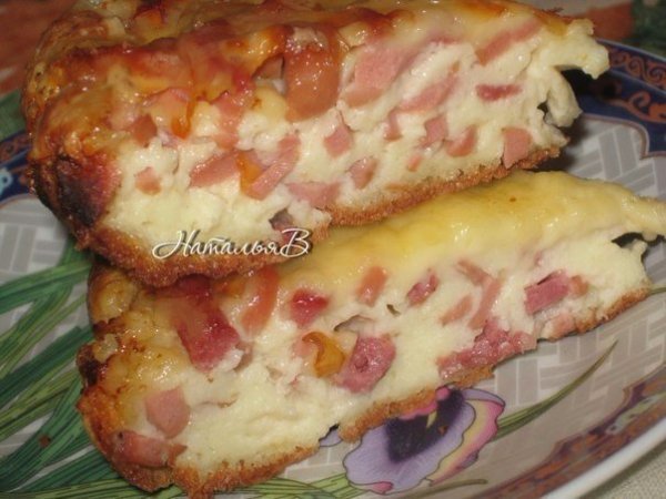 Название: Пицца-пирог с колбасно-сырной начинкой