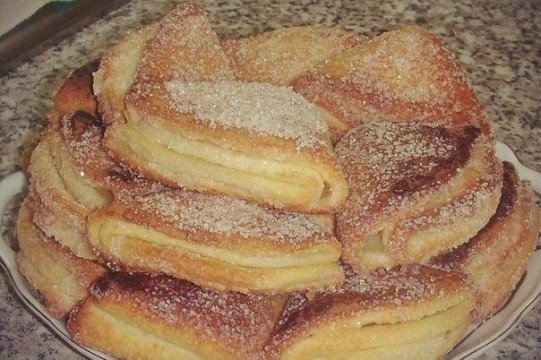 Описание: Печенье из творогаИнгредиенты:400гр творога смешать с250 г маргарина(натертого на терке) добавить480 гр муки с 1 ч.л разрыхлителясоль щепоткаПриготовление:Раскатать тесто и выдавить кружки.Каждый кружок обмакнуть одной стороной в сахар, сложить пополам обсахарeной стороной внутрь, получившейся полукруг опять обмакнуть в сахар и снова сложить засахарённой стороной внутрь, одну сторону получившегося треугольника обмакнуть в сахаре.На противень выложите печенье обсахарённой стороной вверх и выпекайте при темп. 180 град. 25 - 30 мин. до золотистого цвета.