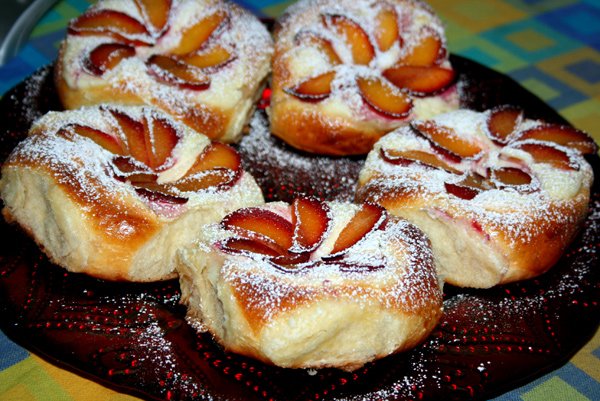 Описание: из расчета на 6 ватрушек.для теста:творог - 100 г,яйцо - 1 шт,сахар - 2 столовых ложки,разрыхлитель - 1,5 чайных ложки,мука - 1-1,5 стакана,растительное масло - 2,5 столовых ложки,щепотка солипудинг в порошке (40-граммовый пакетик) - взять 20 г,сахар - 2-3 столовых ложки,молоко - 270-280 млконсервированные абрикосы, персики или другие фрукты,яйцо или яичный желток для смазывания ватрушек,сливочное масло или нежирные сливки для смазывания готовых ватрушекПриготовить тесто.Муку просеять и смешать с разрыхлителем.Яйцо слегка взбить вилкой или венчиком.Творог хорошо размять (можно протереть через сито или сделать массу более однородной, без комков, при помощи стержневого измельчителя).В творог добавить сахар, щепотку соли, растительное масло и хорошо перемешать.Добавить яйцо и снова перемешать.Постепенно ввести муку с разрыхлителем и замесить нетугое тесто.Тесто скатать в шар и убрать в холодильник на ~15-20 минут.Сварить пудинг.Порошок пудинга высыпать из пакетика в миску (в пропорциях к этому рецепту нам понадобится половина 40-граммового пакетика).К порошку добавить сахар и влить 2 столовых ложки молока. Массу хорошо перемешать.Оставшееся молоко налить в кастрюлю и довести до кипения.Закипевшее молоко снять с огня и аккуратно, тонкой струйкой, при непрерывном помешивании ввести пудинговую массу с сахаром (пудинговую массу предварительно еще раз хорошо размешать).Все хорошо перемешать, снова поставить на огонь, довести до кипения и кипятить, непрерывно помешивая, венчиком или ложкой, пока масса не начнет густеть, ~1 минуту.Снять пудинговую массу с огня.Из теста сформировать жгут, разделить его на 6 частей и скатать шарики.На смазанный маслом противень выложить шарики.В середине каждого шарика сделать углубление, при помощи донышка стакана (дно стакана обмакнуть в муку).Смазать ватрушки яйцом или яичным желтком.В углубления положить по ~1 столовой ложке пудинга.Украсить ватрушки дольками фруктов.Выпекать при температуре ~180°C ~20 минут.Горячие ватрушки вынуть из духовки и смазать сливочным маслом или нежирными сливками (смазывать нужно румяные края ватрушки).