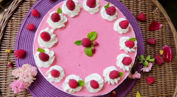Название: Торт Малиновая роза с чизкейком и бисквитом брауни