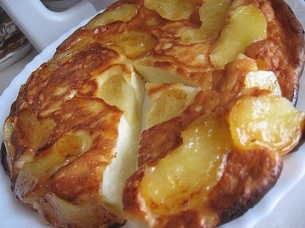 Описание: ТВОРОЖНО-ЯБЛОЧНАЯ ЗАПЕКАНКА.2 яблока2 ст.л. слив. масла1 ст.л. сахара (если есть, то коричневый)Для теста:250 г. творога2 яйца3 ст.л. сахаращепотка соли0,5 ст. сметаны3 ст.л. муки (просеять)Очистить яблоки и порезать на дольки.Затем обжарить на сковороде (которую можно потом поставить в духовку) на сливочном масле.Посыпать сахаром. 5 минут с одной стороны и 3 мин. с другойПриготовить тесто и залить им яблоки.Подержать на огне еще несколько минут и поставить в духовку на 200 гр. до зарумянивания.Приятного Вам чаепития!