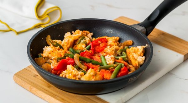 Название: Белковый омлет с зеленой фасолью, луком и помидорами