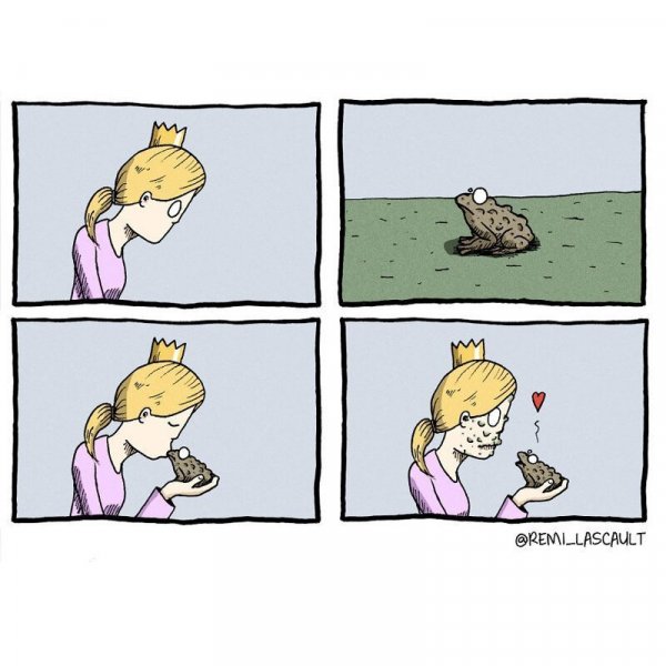 Описание: Французский художник Реми Ласко прославился в интернете тем, что создаёт абсурдные комиксы обо всём на свете. Иллюстрации из четырёх кадров всегда заканчиваются неожиданно и буквально пропитаны чёрным-чёрным юмором.