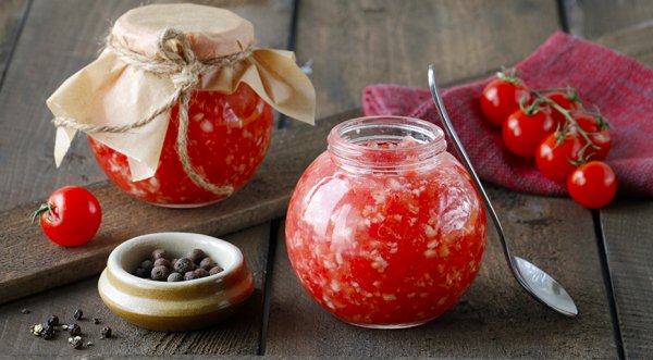 Описание: Для приготовления хреновины классической нужно:2 кг мясистых помидоров «сливка»250 г свежих корней хрена200 г чеснока30 г солиДля приготовления хреновины классическим способом подготовьте помидоры: разрежьте на четвертинки, удалите семена вместе с жидкостью, они здесь не понадобятся. Слегка посолите помидоры (пары щепоток соли достаточно) и положите в дуршлаг, чтобы вытекла лишняя жидкость.Очистите чеснок. Очистите хрен от кожицы, нарежьте средними кусочками.Если вы пользуетесь мясорубкой – сначала проверните чеснок, потом хрен, потом помидоры. Если у вас кухонный комбайн, кладите порциями сразу все ингредиенты. Вам нужно получить однородный соус с очень мелкими, почти не ощущаемыми кусочками.Приправьте соус солью следующим образом: сначала смешайте соль с 4–5 ст. л. хреновины, дождитесь, пока соль растворится, и затем вмешайте соленый соус в основную массу соуса.Стерилизуйте банки или бутылки и разлейте хреновину. Закройте, дайте постоять при комнатной температуре 1 ч, после чего поставьте в холодильник, где и храните.Кстати: если вы хотите хранить хреновину без холодильника, расфасуйте приправу по банкам объемом примерно 300 мл и пастеризуйте на водяной бане 15 мин., после чего закройте, переверните крышками вниз, остудите и поставьте на хранение в темном месте.