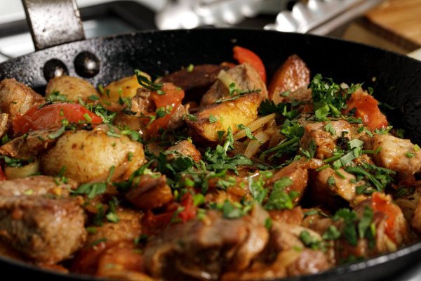 Описание: Оджахури Ингредиенты:Мясо 1 кгКартофель 1 кгчеснок 5 зубчиковлук 2 штперец болгарский 2 штпомидоры 3 штзеленьПриготовление:Мясо нарезают кусочками по 25–30 г, посыпают солью, перцем и жарят до полу готовности.Мясо нужно переложить в огнеупорную посуду или противень, добавить нарезанный кружочками картофель и поставить в духовку, после чего кладут чеснок, мелко нарезанный репчатый лук и болгарский перец, а в конце тушения – нарезанные помидоры, зелень, перемешивают и доводят до готовности.Подают посыпав зеленью.Приятного аппетита!