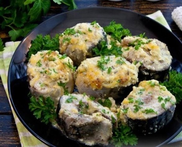 Описание: Скумбрия, запечённая в сметанно-сырном соусеНеобходимые ингредиенты:- Скумбрия - 550 г (1 шт.) - Сыр твёрдый - 70 г - Сметана - 200 г - Яйцо - 1 шт. - Соль - по вкусу - Перец чёрный молотый - по вкусу - Травы прованские сушёные - 0,5 ч. ложки - Петрушка свежая (для подачи) - 10 г (3-4 веточки) Процесс приготовления:1. Подготавливаем необходимые продукты. Скумбрию предварительно размораживаем, но не полностью, чтобы рыбу можно было легко нарезать и кусочки хорошо сохраняли форму. Включаем духовку для разогрева до 190 градусов;2. У рыбы отрезаем голову, удаляем внутренности, чёрную плёнку и плавники. Тушку нарезаем кусочками шириной около 3,5 см;3. Кусочки скумбрии посыпаем солью и перцем (по 1-2 щепотки). Слегка перемешиваем, чтобы специи равномерно распределились по рыбе;4. Сыр натираем на средней тёрке;5. В миску выкладываем сметану и сыр, разбиваем яйцо;6. Туда же – соль на кончике ножа и прованские травы;7. Всё перемешиваем – соус готов;8. В форму для запекания выкладываем кусочки рыбы;9. Заливаем скумбрию приготовленным сметанно-сырным соусом;10. Форму накрываем крышкой или фольгой. Отправляем в предварительно разогретую до 190 градусов духовку, запекаем рыбу 15 минут;11. Затем крышку/фольгу аккуратно снимаем. Возвращаем форму с рыбой в соусе в духовку ещё на 10-15 минут, до подрумянивания (ориентируйтесь на особенности своей духовки);