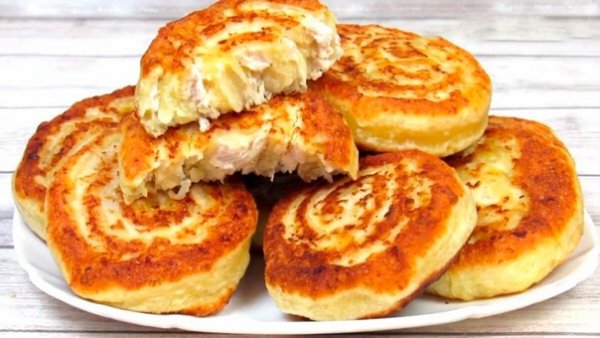 Описание: Ленивые пирожки с куриным фаршем на быстром творожном тесте.Прекрасная альтернатива классическим жареным пирожкам. Ленивые пирожки получаются сытными, они не теряют своих вкусовых качеств даже в холодном виде, а поэтому отлично подходят на перекус к чаю или даже в школу и на работу. Ингредиенты: Начинка 🔸Фарш куриный - 300 гр 🔸Лук репчатый - 1 шт 🔸Картофель - 1 шт 🔸Соль, перец по вкусу Тесто 🔸Творог 5% - 250 гр 🔸Яйцо куриное - 2 шт 🔸Масло растительное - 2 ст.л 🔸Мука пшеничная - 300 гр 🔸Разрыхлитель - 1 ч.л 🔸Соль - ½ ч.л Как приготовить ленивые пирожки с куриным фаршем: В миску выкладываем мягкий творог и разминаем вилкой. Можно взять и обычный зернистый творог, но тогда его нужно будет протереть через сито или перебить блендером. К творогу добавляем 2 яйца, пару столовых ложек растительного масла и соль. Перемешиваем до однородности. Муку смешиваем с разрыхлителем и частями просеиваем в тесто, каждый раз хорошо перемешивая. Когда ложкой перемешивать тесто станет тяжело, припудриваем рабочую поверхность стола мукой, выкладываем тесто и замешиваем его руками. В итоге получается мягкое, эластичное тесто, которое не липнет к рукам. Тесто накрываем пленкой и даем отдохнуть. Для начинки к фаршу добавляем прокрученный через мясорубку лук, натертую на крупной терке картофелину, соль и черный молотый перец по вкусу. Перемешиваем. Тесто раскатываем в прямоугольный пласт размером примерно 30*40 см. Сверху выкладываем начинку и равномерно ее распределяем по поверхности теста. Скручиваем тесто с начинкой в рулет. Защипываем края и нарезаем рулет поперек на кусочки шириной около 2 см. Каждый кусочек переворачиваем срезом вверх и немного расплющиваем, придавая округлую форму. Подготовленные пирожки поджариваем на сковороде на небольшом количестве масла. Жарить необходимо на среднем огне под закрытой крышкой по 3-4 минуты с каждой стороны. Затем ленивые пирожки доводим до готовности в духовке в течение 15 минут при температуре 150°С.