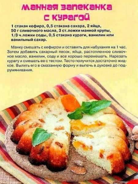 Манная запеканка с курагой