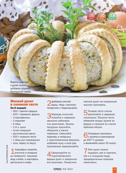 Мясной рулет в слоёном тесте