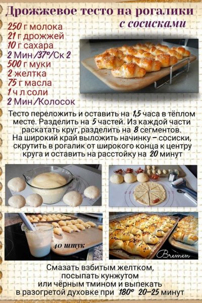 ДРОЖДИВОЕ ТЕСТО НА РОГАЛИКИ С СОСИСКАМИ