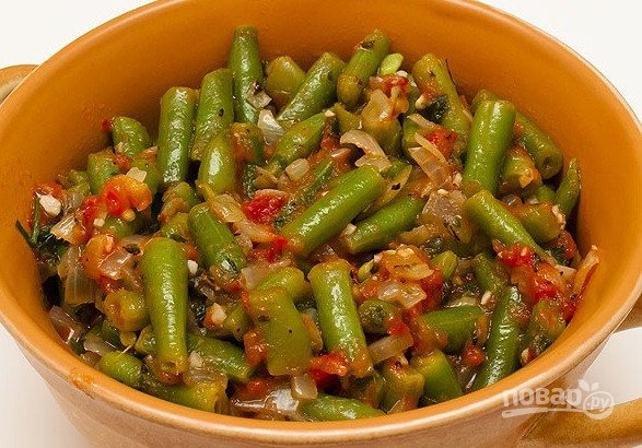 Описание: Фасоль стручковая молодая - 500 грамм• Помидоры свежие грунтовые - 200 грамм• Пассеровка - 330 грамм• Чеснок - 5 грамм• Базилик свежий - 20 грамм• Петрушка - 20 грамм• Перец красный молотый - по вкусу• Соль - по вкусу• Масло растительное - 30 граммПассеровка: • Перец болгарский - 350 грамм• Лук репчатый - 200 грамм• Масло растительное - 40 грамм• Соль, перец - по вкусуЛобио из зеленой стручковой фасоли – это традиционное блюдо грузинской кухни.Сначала готовим пассеровку. Нарезаем болгарский перец крупными кубиками, лук – соломкой. Пассеруем на растительном масле до готовности, за 5 минут до готовности добавляем соль и черный молотый перец. Даем пассеровке остыть;Для лобио бланшируем стручковую фасоль 3-5 минут, образовавшуюся воду сливаем, фасоль отжимаем. Добавляем нарезанные крупными кубиками помидоры, пассеровку, мелко рубленый чеснок, базилик и петрушку. Солим и добавляем красный молотый перец по вкусу. Все ингредиенты тщательно перемешиваем.