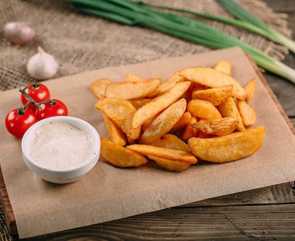 Описание: Картофель - 1 кг.Оливковое масло - 1/3 стакана.Горчица - 2 ч.л.Чеснок - 3-4 зубчика.Соль.Для приготовления лучше выбирать молодой картофель.Картофель тщательно моем грубой стороной губки. Затем каждый клубень разрезаем на дольки (примерно 4-6 частей, в зависимости от размера клубня).Выкладываем нарезанный картофель в кастрюлю, заливаем холодной водой. Ставим кастрюлю с картофелем на сильный огонь. После того, как вода закипит, варим картофель еще 3 минуты. Затем сливаем воду.Добавляем к картофелю оливковое масло, соль и пропущенный через пресс чеснок. Тщательно перемешиваем, так чтобы каждая долька пропиталась соусом. Выкладываем картофель на противень.Ставим противень с картошкой в заранее разогретую духову до 200-210 гр. и готовим 20-25 минут.Картофель Айдахо готов! Гарнир получается очень вкусным, попробуйте сами!