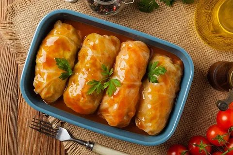 Описание: 1 капуста белокочанная0,5стакана риса500гр. мясного фарша1 морковка1 луковицасольчерный молотый перецрастительное маслосметанаПрежде всего нам понадобится хорошая белокочанная капуста. Хорошая не в смысле самая большая, напротив берем капусточку среднего размера, обращаем внимание на то, чтобы лист был сочный и тонкий. Новые сорта с жесткими листьями, на которые даже заяц не польстится, проходим мимо.Снимаем с капусты первые листья. Затем ножом возле кочерыжки делаем глубокие надрезы. Это нужно для того, чтобы капуста быстрее варилась, да и потом намного легче отделять лист.В кипящую воду кладем капусту кочерыжкой вниз. Варим 5 минут.Переворачиваем капусту кочерыжкой вверх и варим 3-4 минуты. Капуста должна стать мягкой, но не распадаться. Общее время варки зависит от сорта капусты, но, как говорится, лучше немного не доварить, чем переварить.Вынимаем капусту, снимаем листья.Разрезаем лист пополам по линии центральной прожилки. При этом центральную прожилку вырезаем. Подготовленные листики на время отставляем в сторону.В слегка подсоленной воде варим рис 6-7 минут до полу готовности.Меленько режем лук и тушим его на медленном огне. Когда лук станет мягким и прозрачным, добавляем мясной фарш.Фарш может быть чисто свиной, говяжий или смешанный. Также получаются очень сочные голубцы, если добавить немного куриного фарша.Обжариваем начинку до полу готовности. Добавляем соль и перец по вкусу.Мясной фарш соединяем с проваренным рисом. Обращаем внимание на то, что мяса в начинке должно быть больше, чем риса. В начинку также можно добавить столовую ложку мелко потертой морковки.В каждый капустный листик кладем ложку начинки и плотно заворачиваем.Голубцы плотно укладываем в посуду. Заливаем подсоленным кипятком так, чтобы вода полностью покрывала наши голубчики.Варим 7-10 минут. Вынимаем голубцы из жидкости и подаем к столу со сметаной. Вот и все. Как видите очень простой, быстрый и вкусный рецепт голубцов.