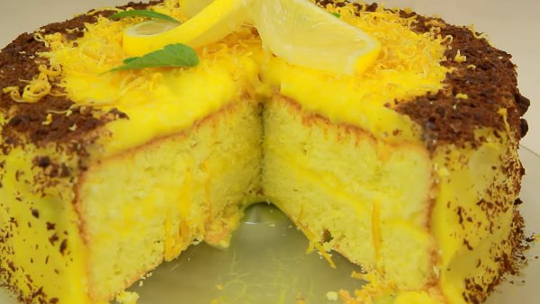 Описание: Яйцо - 6 шт.сахарная пудра - 100 гмука пшеничная - 100 гсода - 1/2 ч. ложкицедра - 1 лимоняичный белок - 3 шт.сок лимонный - 0,5 лимонаДля теста яичные белки отделяют от желтков. Белки взбивают до устойчивой пены. Желтки растирают с сахарной пудрой, добавляют тертую лимонную цедру и хорошо перемешивают. Вводят муку с содой, быстро замешивают тесто, в конце добавляют взбитые белки.Тесто выливают в смазанную маслом и посыпанную мукой форму диаметром не более 20 см. Выпекают 25 минут при 230 °С. Готовность проверяют лучинкой.Для крема белки взбивают до устойчивой пены. Продолжая взбивание, постепенно добавляют сахарную пудру, в конце вливают лимонный сок.Размягченное масло взбивают до пышной консистенции и осторожно перемешивают со взбитыми белками.Для глазури белки растирают с сахарной пудрой, добавляют сок лимона до получения пластичной массы.Выпеченный полуфабрикат освобождают от формы, разрезают на 3 пласта. Склеивают их кремом, верх и бока покрывают глазурью.Торт ставят в разогретую до 120 °С духовку на 10 минут, чтобы глазурь затвердела. После охлаждения оформляют ломтиками лимона и орнаментом из крема.