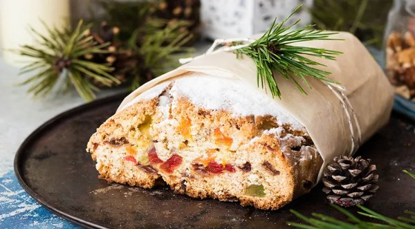 Описание: Мука — 500 гтворог — 250 гсахар — 140 гмасло сливочное — 175 гразрыхлитель — 15 гванильный сахар — 10 гароматизатор «горький миндаль» — 4 каплиром — 20 млцукаты апельсина — 50 гсушеная вишня — 50 гизюм светлый — 50 гизюм темный — 50 гминдаль — 150 гсахарная пудра — 50 гДля покрытия:масло сливочное — 100 гпудра сахарная — 1/2 стаканаПодготовьте сухофрукты для немецкого рождественского штоллена. Положите изюм, цукаты и смесь орехов в стеклянную миску, залейте ромом и оставьте на 4–6 часов.Откиньте на сито, обсушите (жидкость от замачивания больше не понадобится) и обваляйте в муке, чтобы кусочки не слипались.Смешайте муку, разрыхлитель, сахар, ванильный сахар, соль, ром, миндальный ароматизатор, яйца, добавьте мягкое масло и творог.Положите цукаты и сухофрукты, дробленный кусочками миндаль. Все хорошо перемешайте — получится довольно густое тесто.Духовку включите на 180 °C, форму смажьте маслом, выложите в нее тесто, хорошо его приминая. Переверните форму с тестом на коврик или бумагу для выпечки и поставьте в горячую духовку. Выпекайте около часа. Готовый штоллен легко выходит из формы. Смажьте горячий рождественский штоллен, только что вынутый из духовки, 1/4 масла, посыпьте через мелкое ситечко 1/4 сахарной пудры. Подождите, пока образуется корочка, и повторите еще 3 раза с оставшимся маслом и пудрой.Остудите, а затем заверните штоллен в несколько слоев фольги или пергаментной бумаги и отправляйте его вызревать на балкон или в холодильник.