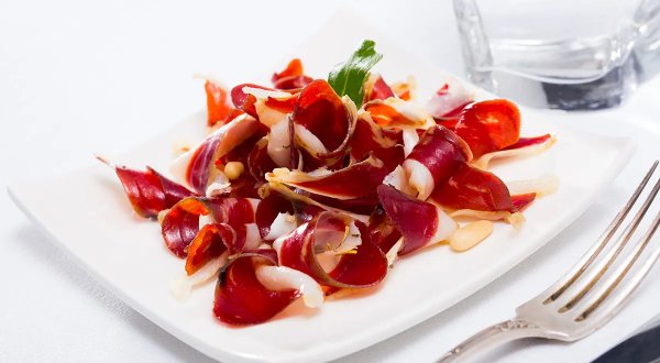 Описание: Утиная грудка 1 кгКоньяк 50 млСоль 15 гСахар-песок 10 гГорчица зернистая 1 ч.л.Розмарин сушеный по вкусуЧеснок сушеный по вкусуПерец чёрный горошек по вкусуУтиные грудки сполосните и обсушите бумажными полотенцами. Разложите на доске кожей вниз. Если есть по периметру неровные края кожи без мяса, то обрежьте их, чтобы грудка выглядела аккуратной.В ступку добавьте по вкусу специи: розмарин, зерна горчицы, черный перец. Измельчите до среднего помола перца и смешайте с сахаром, нитритной солью и гранулированным чесноком.Тщательно натрите утиные грудки смесью соли и специй со всех сторон, помассируйте не меньше 1 минуты. Переложите грудки по 1-2 шт. в плотные пакеты и завакуумируйте.Уберите пакеты с утиным филе в холодильник на 3 дня. Периодически массируйте мясо, чтобы специи лучше пропитали его. Достаньте просоленную утку и смойте все специи.Обсушите мясо бумажным полотенцем, сложите в контейнер. Полейте крепким ароматным алкоголем (бренди/коньяк/виски) и обмакните в нем со всех сторон каждую грудку.Подержите мясо в алкоголе 5-10 минут и обсушите. В большой пластиковый контейнер постелите пергамент для выпечки, разложите на нем утиные грудки кожей вниз так, чтобы они не соприкасались друг с другом. Прикройте крышкой, но неплотно.Уберите контейнер с уткой на сутки в холодильник. Затем достаньте, поменяйте пергамент на чистый и сухой, если в контейнере влажно, то и его вымойте обсушите. Верните грудки на пергамент кожей вверх. Уберите в холодильник.Каждый день меняйте пергамент (пока он не станет сухим) и переворачивайте филе. Через 2 недели можно пробовать готовый продукт, если для вас он еще слишком влажный, то вяльте дальше. Готовый продукт храните в холодильнике полностью обернув в пергамент.ХОЗЯЙКЕ НА ЗАМЕТКУВ вяленые утиные грудки в домашних условиях при засолке вы можете добавлять: тимьян, хлопья острого перца, сладкую паприку (обычную и копченую), а также апельсиновую/лимонную/мандариновую цедру.КСТАТИПри желании из вяленой утки можно сделать чипсы. Для этого вам понадобится дегидратор. А чтобы очень тонко нарезать вяленое утиное филе, его можно слегка подморозить.