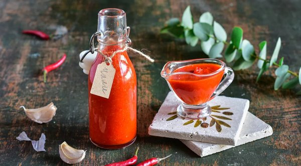 Описание: 20 минутДополнительное время: 15 минутДля приготовления 8 порций нужно:перец чили красный — 300 гуксус белый винный — 60 млчеснок — 1 головкасахар-песок — 1 ст. л.соль — 1 ч. л.Перец чили нарежьте небольшими кусочками. Семена и перегородки можно оставить: в этом случае соус получится очень острым. Зубчики чеснока крупно нарежьте, поместите в небольшой сотейник, добавьте чили.Влейте в сотейник 60 мл воды, всыпьте сахар и соль, доведите до кипения, варите 1–2 минуты. Снимите с огня, влейте половину уксуса и дайте смеси настояться под крышкой 10–15 минут.Переложите содержимое сотейника в чашу блендера, измельчите до состояния однородного пюре.Снова поставьте соус на плиту, доведите до кипения, варите на медленном огне 2 минуты. Влейте оставшийся уксус, перемешайте, дайте немного настояться.Подавайте соус полностью остывшим. Храните в холодильнике, в контейнере с плотной крышкой.Полезный советПерцы чили для соуса можно предварительно запечь, затем завернуть в пакет на 10–15 минут и после очистить от кожицы. Так соус получится интересным на вкус и более гладким по консистенции.