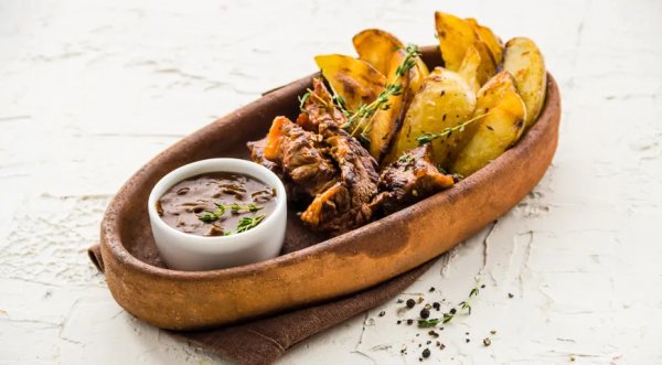 Описание: 7 часовДля приготовления 10–20 порций нужно:кости телячьи — 800 гкости говяжьи — 500 глук репчатый — 300 гморковь — 300 гкорень сельдерея — 300 гтоматная паста — 150 гсухое красное вино — 120 млбукет гарни – 1 шт.свежемолотый черный перецсольКости положите на противень, застеленный фольгой, и прогрейте при 220 °С в течение 1 часа. Периодически переворачивайте, чтобы они равномерно пропеклись.Выньте кости из духовки, немного остудите, обмажьте со всех сторон томатной пастой.Овощи нарежьте средними кусочками. Переложите кости в жаропрочную и огнестойкую форму, сверху разложите овощи, верните в духовку. Запекайте при прежней температуре, 30 минут. Выньте форму из духовки, остудите, 10 минут.Влейте в форму красное вино и энергично соскребите деревянной лопаткой все поджарки, которые образовались на дне. Смешайте их с вином. Переложите содержимое формы в большую кастрюлю. Добавьте букет гарни и специи. Залейте питьевой водой так, чтобы она полностью покрывала кости (примерно 2,5 л).Поставьте кастрюлю на сильный огонь, доведите до кипения. Уменьшите нагрев до минимума и варите 3–4 часа.Процедите бульон через самое мелкое сито или марлю, лучше 2 раза. Перелейте в сотейник, доведите на среднем огне до кипения.Уменьшите огонь и выпарьте жидкость почти в 2 раза. На это у вас уйдет примерно 1,5 часа. Готовый соус остудите и подавайте к стейку, запеченной птице или овощам на гриле.