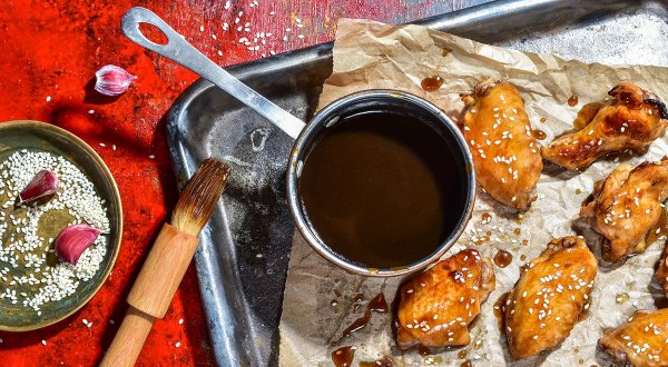 Описание: 20 минутДля приготовления 8 порций нужно:соус соевый — 200 млвино рисовое — 100 млсахар тростниковый — 50 гимбирь — 20 гмёд — 1 ст. л.чеснок — 2 зубчикамасло рапсовое — 2 ч. л.крахмал кукурузный — 7 гЧеснок пропустите через пресс. Очищенный корень имбиря натрите на мелкой терке, переложите в небольшой сотейник, добавьте чеснок.Влейте в сотейник соевый соус и вино. Добавьте тростниковый сахар, мед и рапсовое масло. Помешивая деревянной лопаткой, доведите смесь до кипения на среднем огне.Кукурузный крахмал разведите в 90 мл холодной питьевой воды, постоянно помешивая венчиком. Получившуюся массу влейте тонкой струйкой в почти готовый соус.Еще раз доведите соус до кипения и сразу же снимите с огня. Он должен загустеть. Процедите терияки через мелкое сито, накройте пищевой пленкой «в контакт», так, чтобы она легла по всей поверхности соуса. Дайте полностью остыть.Перелейте соус терияки в чистую сухую банку с плотной крышкой. Храните в холодильнике до 2 недель.
