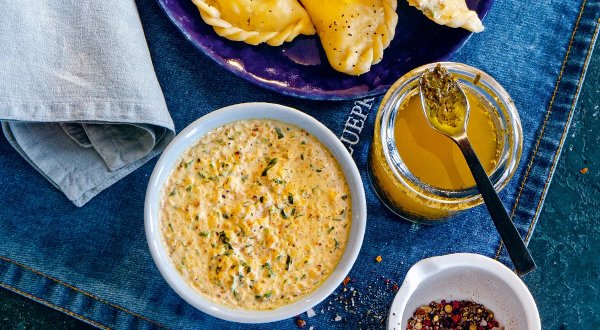 Описание: 20 минутДля приготовления 4 порций нужно:сливки жирностью 20% — 250 млгрецкие орехи — 100 гтертый сыр — 50 гчеснок — 3 зубчикапетрушка — 3–4 веточкисольсвежемолотый черный перецОбжарьте орехи на сухой сковороде, переложите на доску, порубите с помощью тяжелого ножа. Отделите от стеблей и мелко нарежьте листья петрушки. Пропустите через пресс чеснок.Верните орехи в сковороду, добавьте чеснок и половину петрушки. Влейте сливки и доведите на слабом огне до кипения. Добавьте сыр, посолите и прогрейте в течение 30 секунд. Сыр должен расплавиться.Снимите соус с огня, добавьте оставшуюся петрушку, приправьте перцем и перемешайте. Храните в холодильнике не более 24 часов.