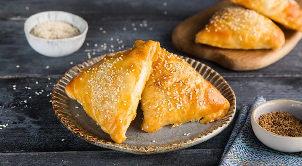 Описание: 1 яичный желток для смазкикунжут для посыпкиДля начинки700 г филе куриного бедра350 г репчатого лука3 г зиры12 г соли5 г черного молотого перцаДля теста420 г муки225 г холодной воды150 г сливочного масла5 г соли1 яйцоМуку просейте, добавьте воду, соль и взбитое яйцо.Замесите крутое тесто. Переложите в чистую миску, закройте и оставьте при комнатной температуре на 1 час.Растопите сливочное масло, остудите до комнатной температуры. Раскатайте тесто в пласт толщиной 1-2 мм. При помощи кисточки смажьте поверхность теста растопленным маслом.Сверните тесто в тугой рулет, оберните пленкой и положите в холодильник на 1.5-2 часа, чтобы масло застыло.Филе куриного бедра нарежьте кубиками со стороной 1 см. Лук мелко нарежьте, смешайте с курицей, солью, перцем и зирой.От рулета теста отрезайте круги весом по 50 г. Присыпьте мукой рабочую поверхность. Раскатывайте тесто в треугольные лепешки. В центр лепешки выложите начинку и сформируйте треугольную самсу.Смажьте домашнюю самсу из слоеного теста с курицей смесью желтка и теплой воды, посыпьте кунжутом. Выпекайте 10-12 минут до золотистого цвета.ХОЗЯЙКЕ НА ЗАМЕТКУПриготовление самсы с курицей из слоеного теста — процесс не слишком утомительный, но если вам нужно сэкономить время и силы, то можете использовать и готовое слоеное тесто. КСТАТИДомашняя самса из слоеного теста с курицей — это, конечно, вкусно, но есть и другие интересные варианты, и не только с мясом! Например, вы можете сделать самсу с тыквой или с тыквой и рисом.
