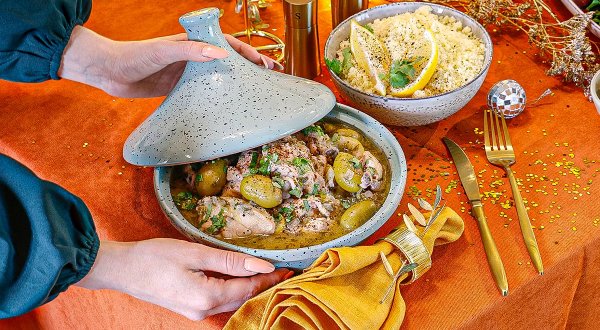 Описание: Курица 1 шт.Оливки 15 шт.Лимон 3 шт.Лук репчатый 2 шт.Чеснок 3 зубчик(а)Петрушка 30 гИмбирь сухой 3 гМасло оливковое 4 ст.л.Соль по вкусуПерец чёрный молотый по вкусуКускус по вкусуПриготовьте соленые лимоны. Для этого лимоны тщательно вымойте, один нарежьте тонкими кружочками, удалите косточки. Из остальных выжмите сок. Выложите кружочки лимона в маленький сотейник, добавьте 2,5 ч. л. соли, залейте лимонным соком и поставьте на огонь. Доведите до кипения и убавьте огонь до минимума. Тушите 15 мин, осторожно перемешав пару раз в процессе приготовления. Остудите до комнатной температуры. Курицу разрежьте на порционные куски. Лук и чеснок очистите, мелко порубите. В жаровне разогрейте масло и пассеруйте лук, помешивая, 5 мин, добавьте чеснок и имбирь, перемешайте. Добавьте в жаровню курицу и влейте 1,5 стакана воды, готовьте под крышкой на слабом огне 25 мин, иногда помешивая и подливая при необходимости воду. Выньте из жаровни куски грудки, продолжайте тушение еще 20 мин. Петрушку мелко порубите. Кружочки соленых лимонов промойте и обсушите на бумажных полотенцах. Верните в тажин грудку, добавьте соленые лимоны, петрушку и оливки, готовьте без крышки на среднем огне 7–10 мин, приправьте по вкусу перцем и солью. Подавайте с кускусом! ПОЛЕЗНЫЙ СОВЕТЭто блюдо можно хранить в холодильнике 2–3 дня, оно станет только насыщеннее и ароматнее. Приготовьте его заранее – это очень удобно.