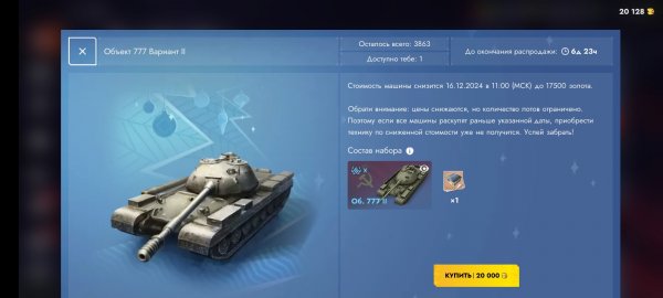 Забрал Обьект 777 Вариант 2, за 20000k галды Tanks Blitz