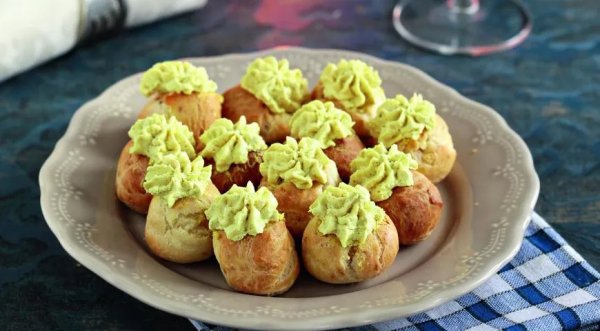 Описание: 15 минутДля приготовления 5 порций нужно:готовые профитроли — 10 шт.сливочный или творожный сыр — 300 гсливки для взбивания — 200 гпрованские травы — 1 ст. л.порошок карриС помощью ножниц срежьте с профитролей «крышечки». Так их будет удобно начинять даже без помощи кондитерского мешка.Для начинки взбейте сливки с карри-порошком, прованскими травами и солью до состояния пышной пены. Аккуратно вмешайте в получившуюся массу творожный или сливочный сыр.Нафаршируйте профитроли, сверху прикройте «крышечками», сразу же подавайте на стол.